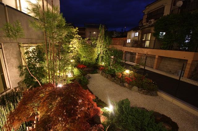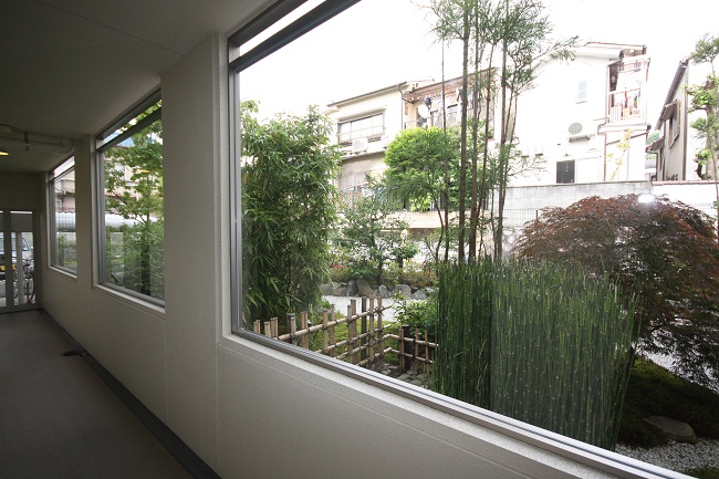 リビング10畳+キッチン・トイレ・バス(セパレート)学び、くつろぎのために最適の空間をご用意しました。中庭には四季を通じて咲く、桜とツツジ、アジサイ、梅です。写真はすべてエスパス一乗寺の敷地内と敷地内から外部の景色を撮影したものです。